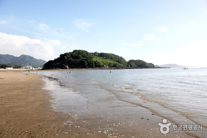 바다 밑 경사가 완만하며, 간만의 차가 크지 않아 가족단위의 피서객들이 많다. 또한 푸른 소나무 숲이